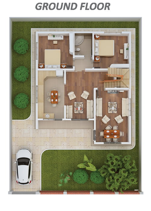 A certain section of Global City is dedicated to the Zumrud Villas. The Zumrud Villas are located on a piece of land with an area of 300 M², and they have two floors and three bedrooms.
